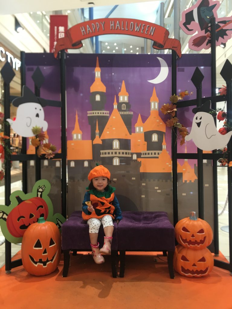 出張中はハロウィンと被っていたので、手作り衣装を持参して近くのショッピングモールへ☆