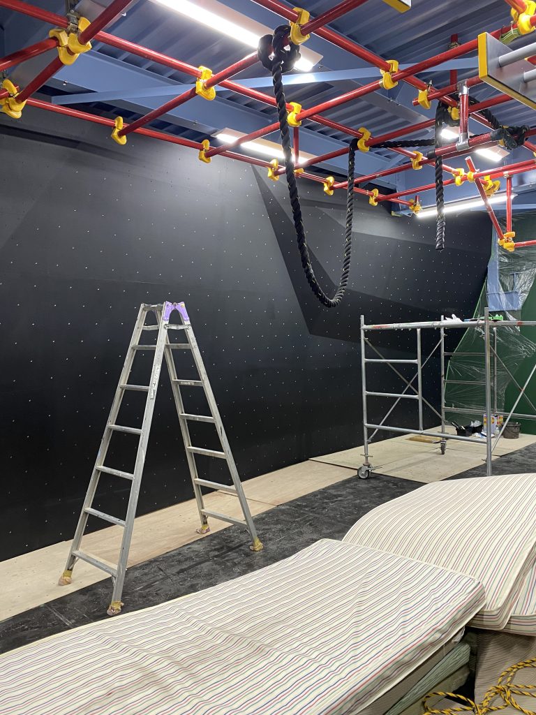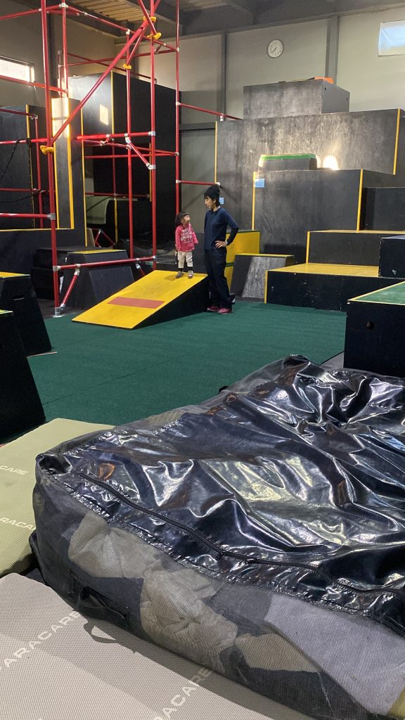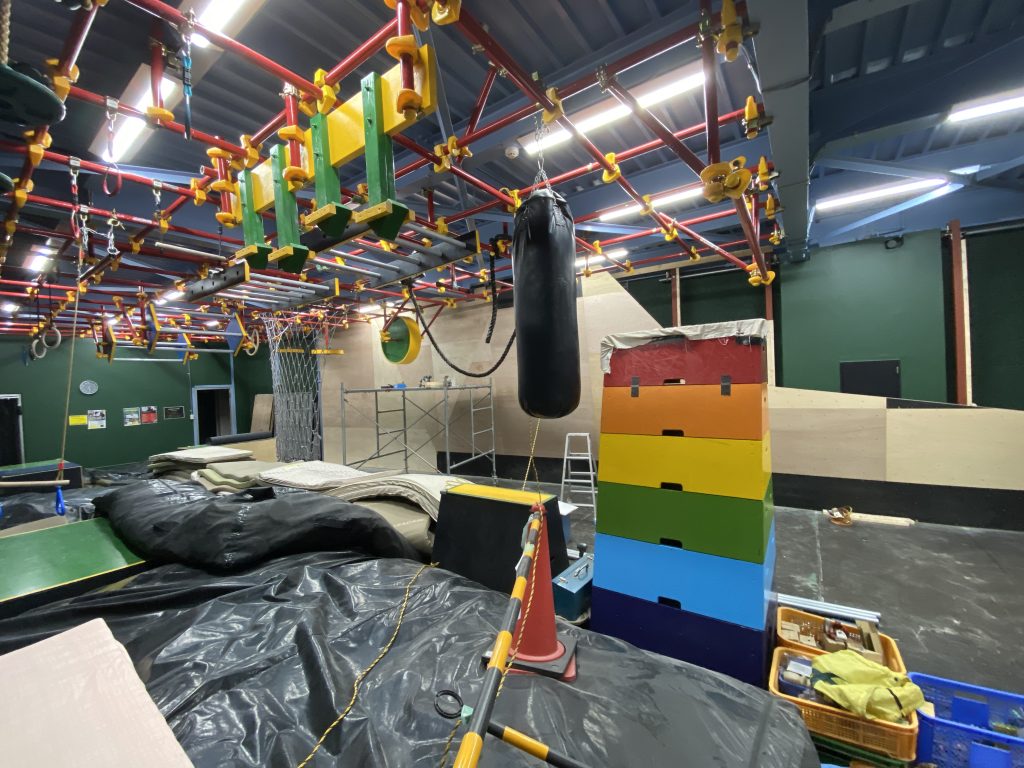 元々ここはパルクール専用スペース(SASUKEのアトラクションが再現されてるの!)で、それ沿いの壁にボルダリング壁施工!パルクール×ボルダリング 融合はワクワクしますね!