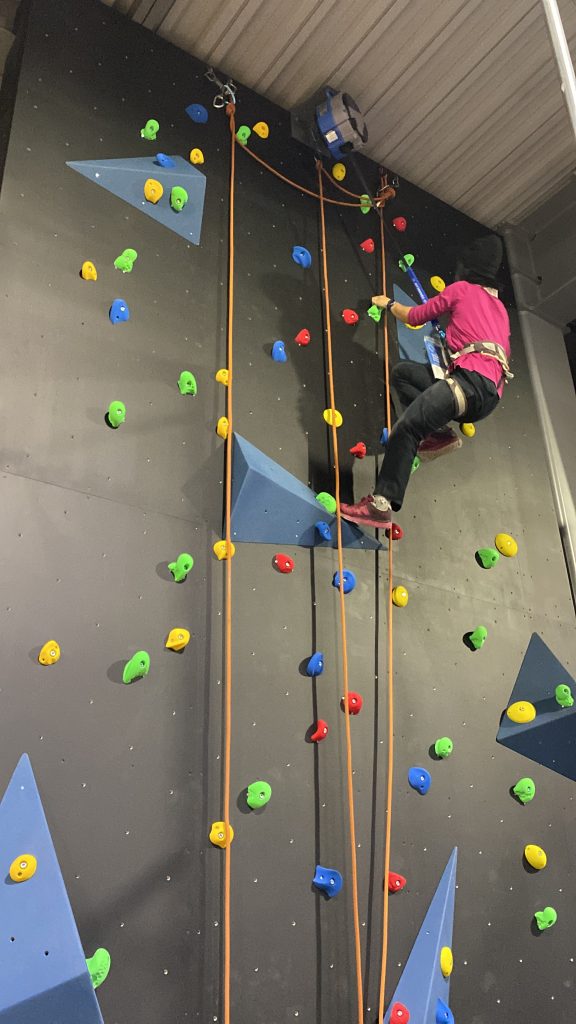 オートビレイ機が付き、一人でハーネスつけて登ることが出来ます♪